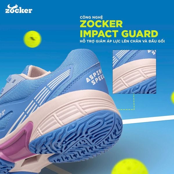 Zocker trang bị công nghệ giảm chấn Impact Guard nhằm giảm áp lực lên bàn chân và đầu gối khi thi đấu dài. Đệm êm, độ nảy vừa phải giúp người chơi duy trì phong độ ổn định mà không bị mỏi hoặc đau nhức sau thời gian dài vận động.