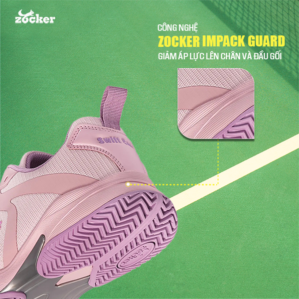 Một ưu điểm nổi bật trong cấu trúc của giày Pickleball Zocker Swift Core nằm ở lớp đế giữa ứng dụng công nghệ Zocker Impact Guard kết hợp với lớp EVA foam đàn hồi cao. Công nghệ này giúp hấp thụ lực tác động mạnh khi người chơi bật nhảy hoặc di chuyển tốc độ cao, đồng thời hỗ trợ hoàn trả năng lượng hiệu quả trong từng bước chạy. Nhờ vậy, người chơi có thể di chuyển linh hoạt và nhẹ nhàng hơn trên sân, đồng thời giảm áp lực lên đầu gối và cổ chân trong quá trình thi đấu.